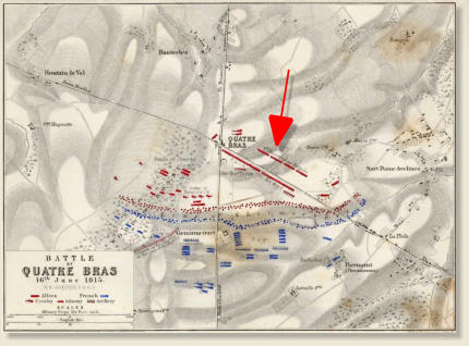 Das Schlachtfeld bei Les Quatre-Bras am 16.Juni 1815.