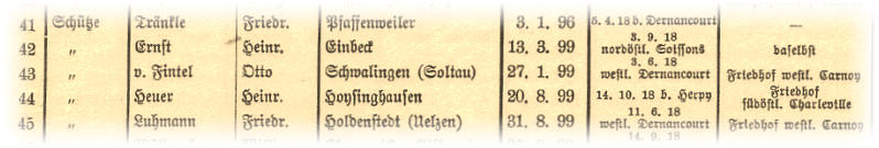 Hier hat der Schütze Otto von Fintel am 3.Juni 1918 mit seinen Kameraden aus